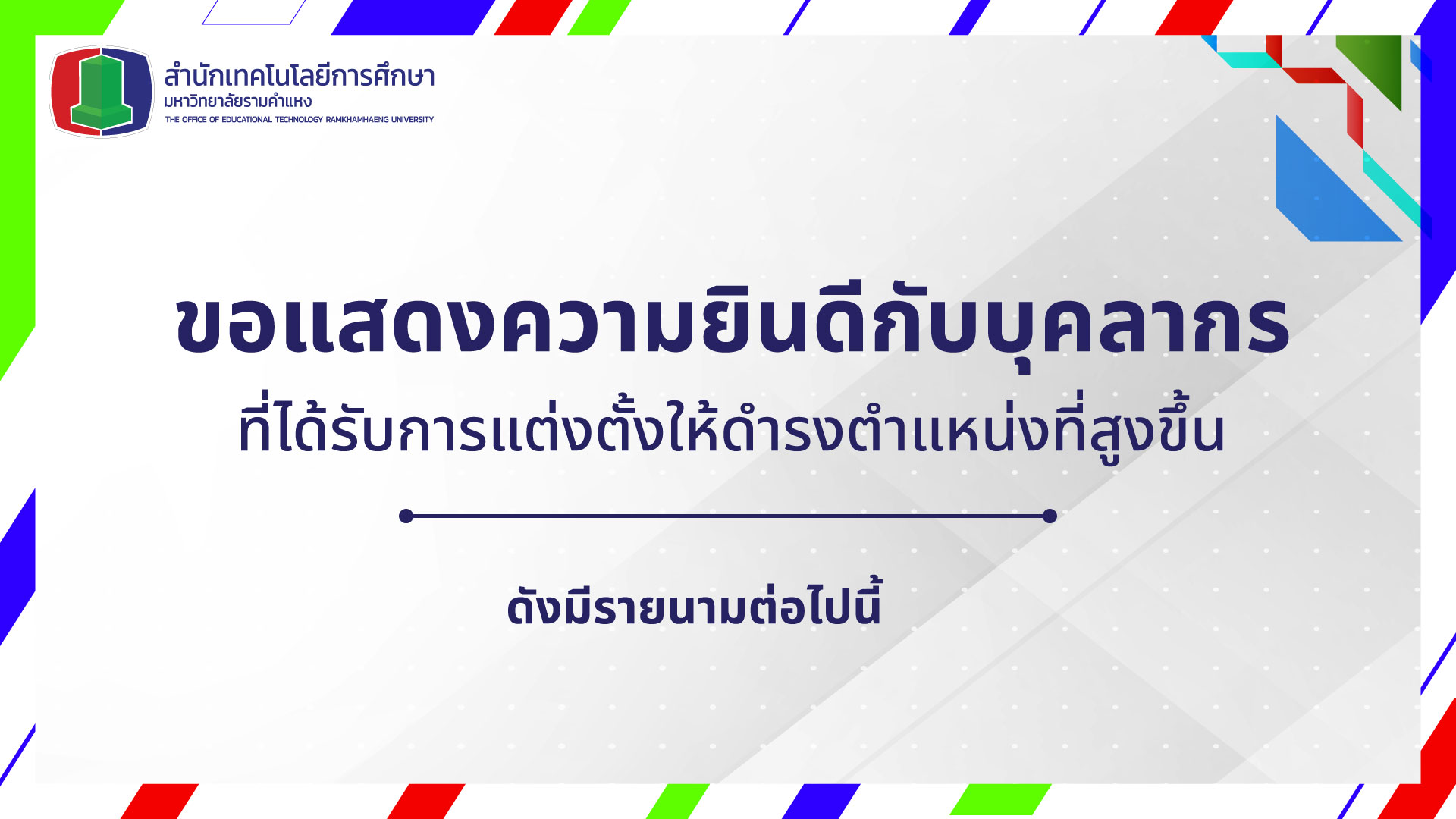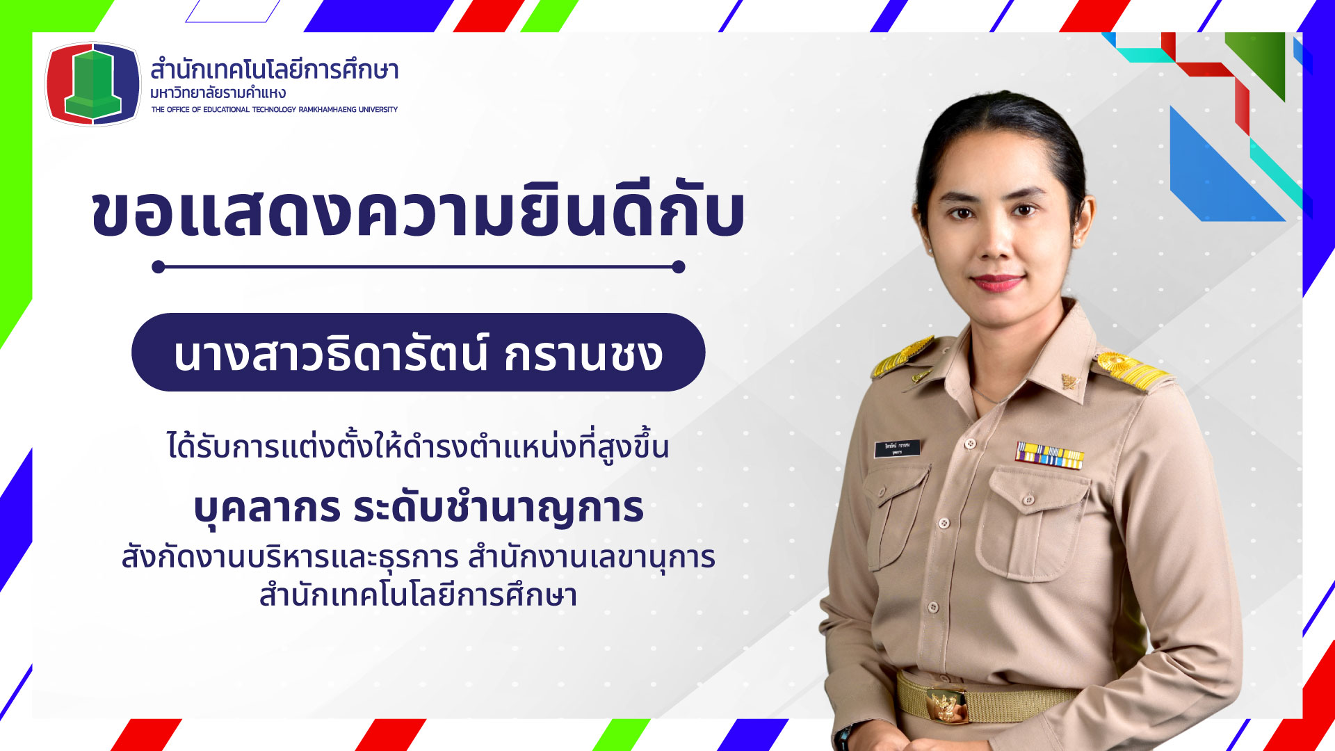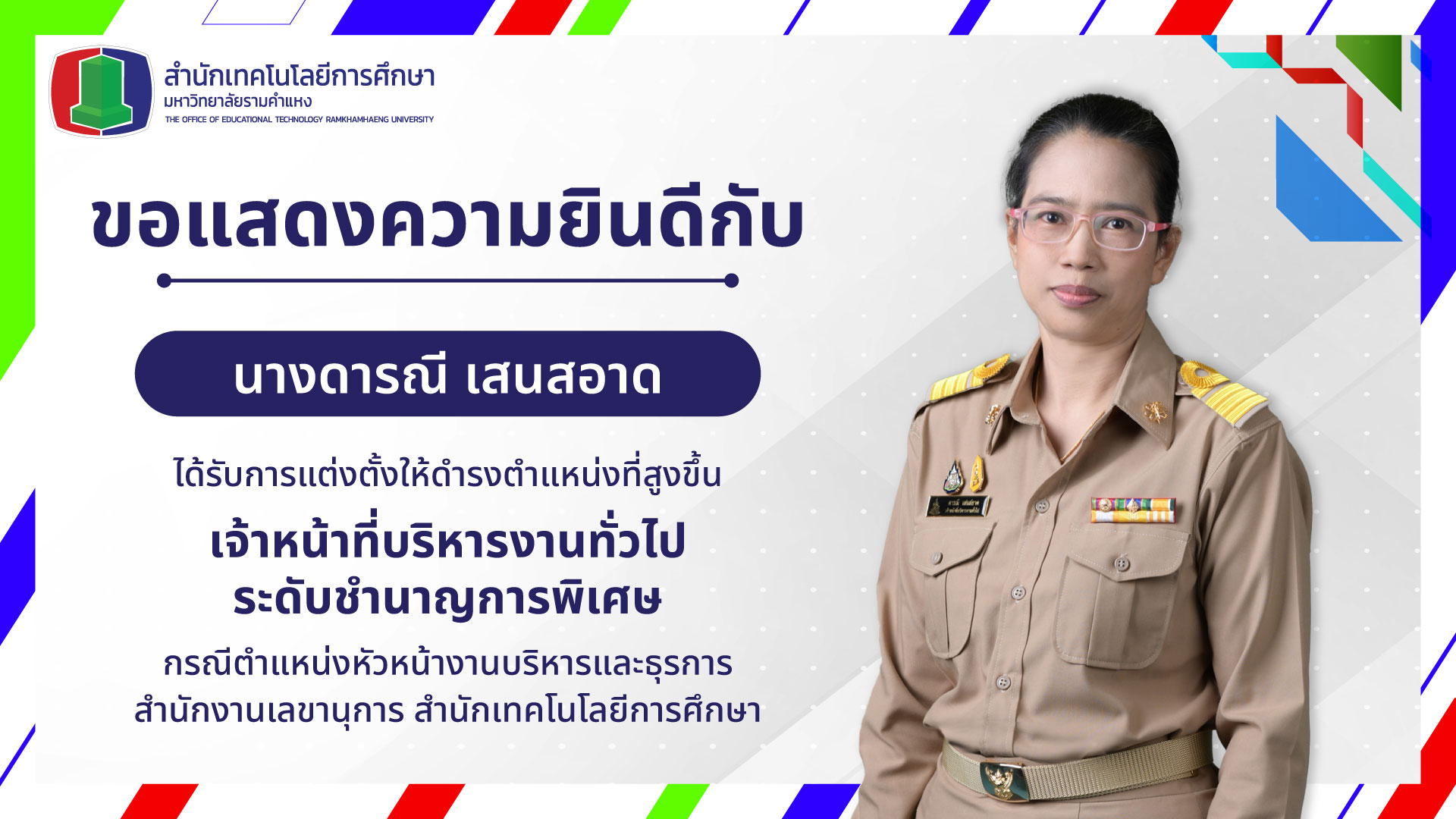 ขอแสดงความยินดีกับบุคลากรที่ได้รับการแต่งตั้งให้ดำรงตำแหน่งที่สูงขึ้น