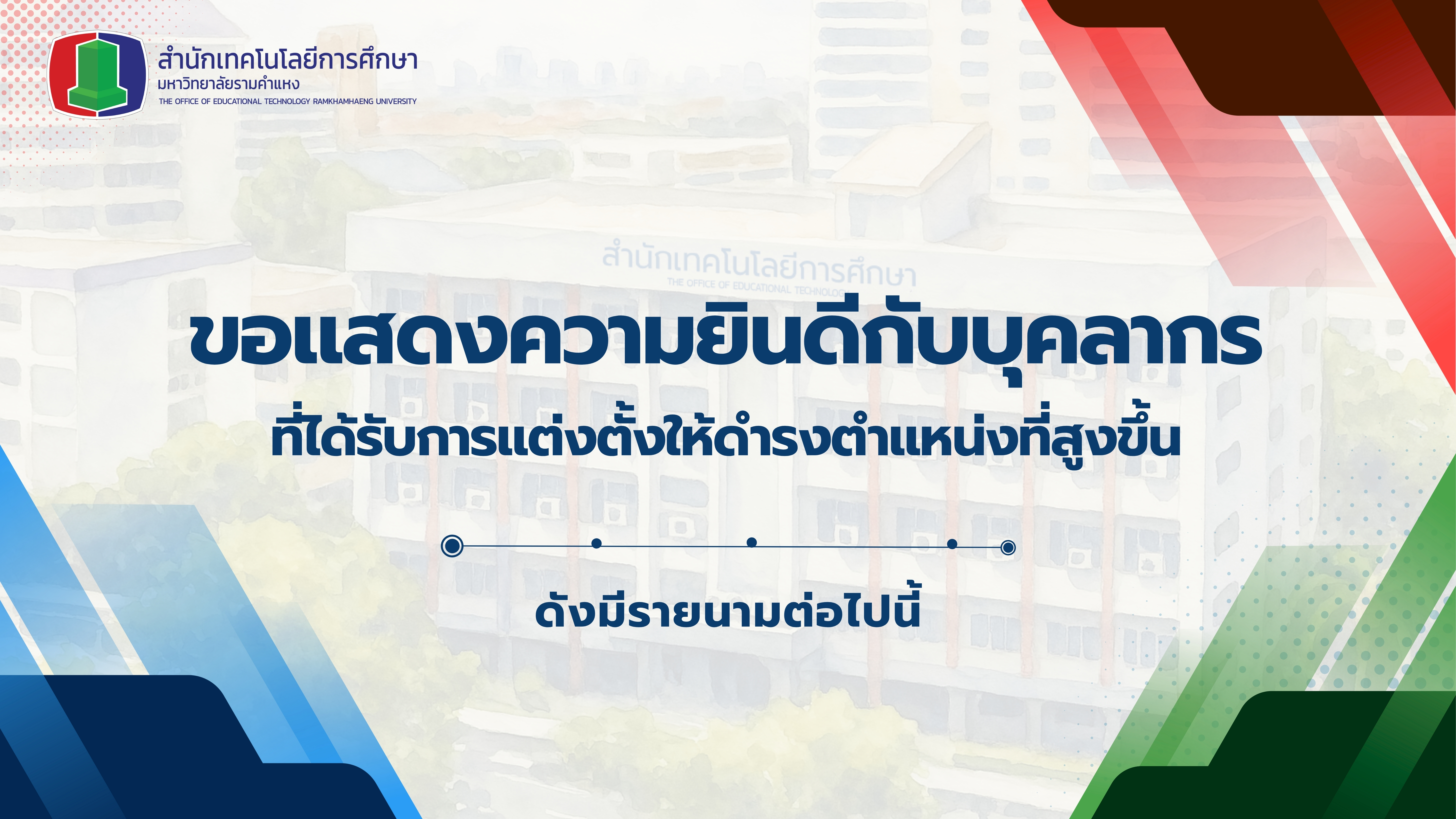 ขอแสดงความยินดีกับบุคลากรที่ได้รับการแต่งตั้งให้ดำรงตำแหน่งที่สูงขึ้น